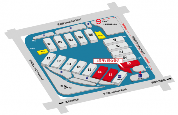 網約車/出租車:請定位“上海新國際博覽中心3號入口大廳”下車(位于花木路與羅山路交叉口,或導航:上海新國際博覽中心7號門)。